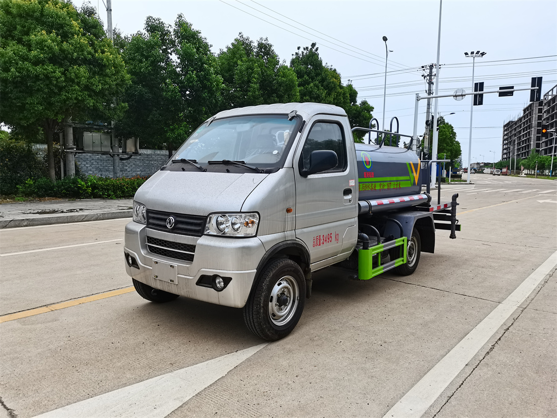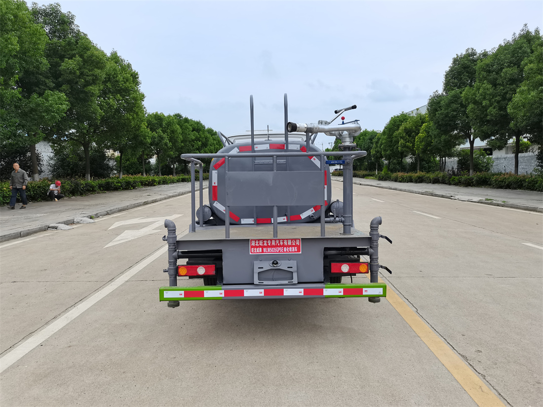 灑水車前裝有鴨形噴嘴或圓頭沖嘴,后面裝有圓柱開灑水噴嘴或蓮蓬頭噴嘴,后部有一工作平臺(tái),裝配有水炮。后部還可裝8個(gè)噴嘴(選裝)。