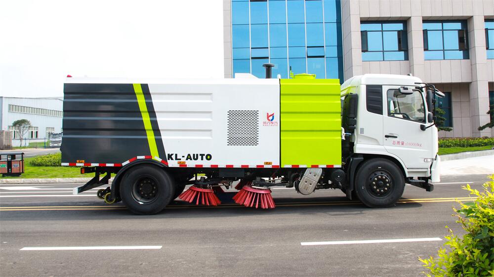 1.采用吸掃混合的方式收集垃圾,濕式除塵、電液,液壓傾翻卸料的作業方式對路面進行清掃作業。