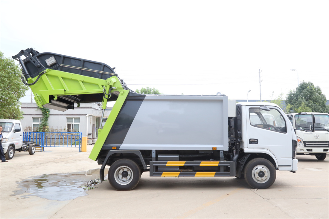 上裝配置:垃圾箱容積:6方,新款平面弧形廂體,廂體材料為武鋼優(yōu)質(zhì)碳鋼,PLC一鍵操作**,手電一體操作模式,兩側(cè)雙電控,帶駕駛室內(nèi)操作,底板支撐加強(qiáng),雙向壓縮,開(kāi)放式易清潔污水箱。壓縮式垃圾車采用機(jī)電液一體化技術(shù),借助機(jī)、電、液聯(lián)合自動(dòng)**系統(tǒng)、電腦**、手動(dòng)操作系統(tǒng),通過(guò)填裝器和推鏟等專用裝置,實(shí)現(xiàn)垃圾倒入、壓碎或壓扁、強(qiáng)力裝填,把垃圾擠入車廂并壓實(shí)和推卸,污水全部進(jìn)入污水廂,解決了垃圾運(yùn)輸過(guò)程中的二次污染的問(wèn)題。壓縮式垃圾車具有自動(dòng)反復(fù)壓縮以及蠕動(dòng)壓縮功能,壓縮比高、密封性好、裝載量大﹑操作方便、環(huán)保性好﹑整車?yán)霉β矢叩葍?yōu)點(diǎn)。作業(yè)自動(dòng)化,垃圾收集方式簡(jiǎn)便、高效。后翻轉(zhuǎn)機(jī)構(gòu)選裝:1、掛塑料桶式翻轉(zhuǎn)機(jī)構(gòu);2、掛鐵桶式翻轉(zhuǎn)機(jī)構(gòu);3、擺臂式翻轉(zhuǎn)機(jī)構(gòu); 4、簸箕斗式翻轉(zhuǎn)機(jī)構(gòu)。