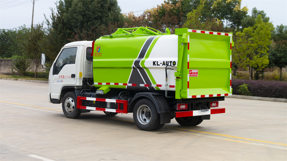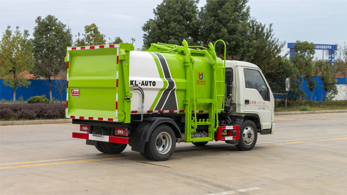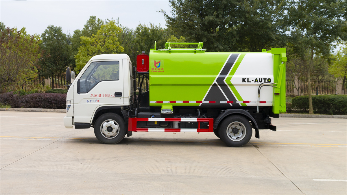 5方掛桶垃圾車-福田小卡3藍牌側(cè)裝壓縮掛桶垃圾車廠家
