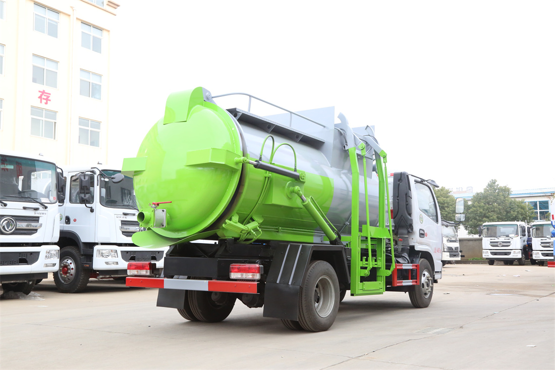 上裝配置:罐體容積6m3,配備120L/240L掛桶提升翻轉機構,液壓系統(tǒng),后蓋液壓鎖緊開啟,罐體可以舉升自卸,尾部帶自流閥;用于運輸液態(tài)垃圾,其特點操作簡單,密封性好,無泄漏,無異味;可選裝固液分離功能,推板擠壓功能,常用于餐館的垃圾轉運處理。