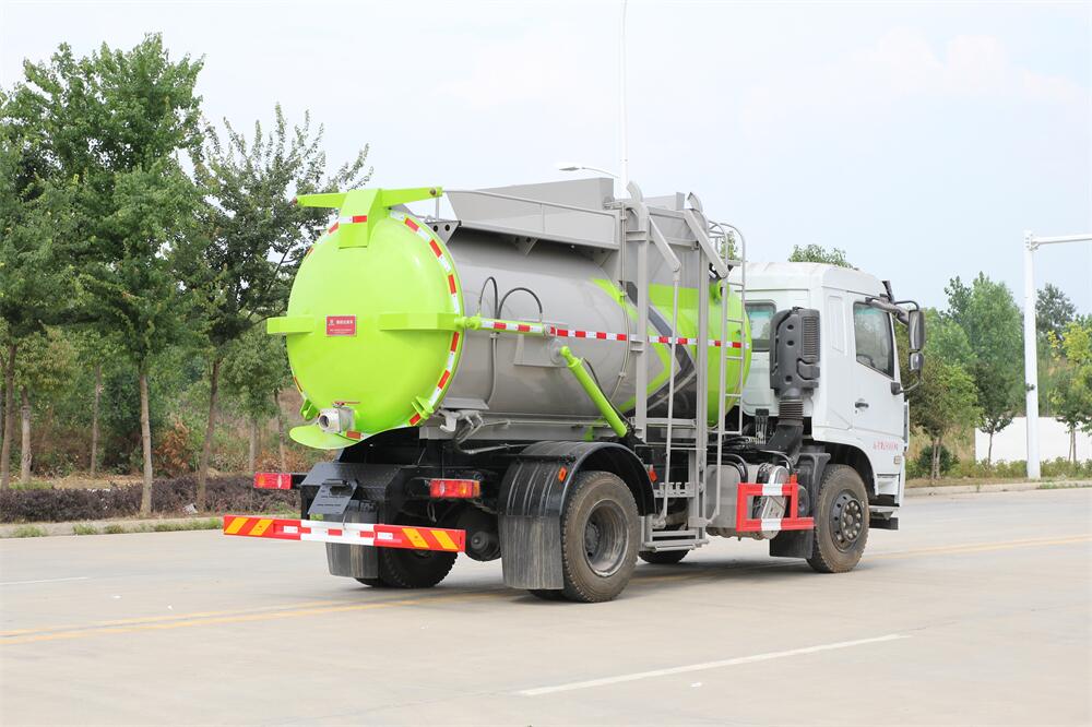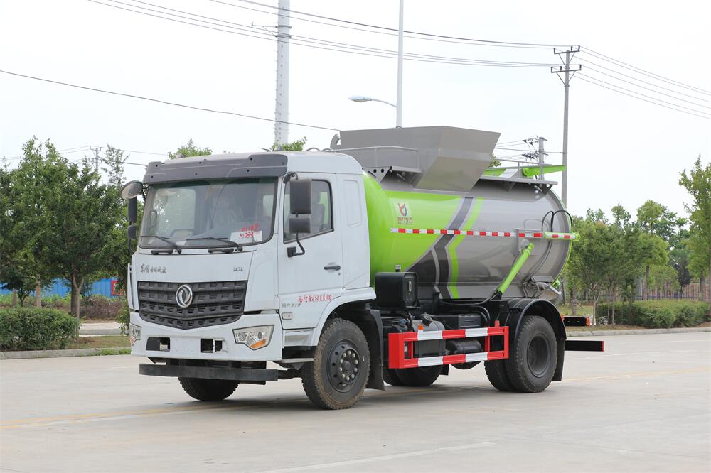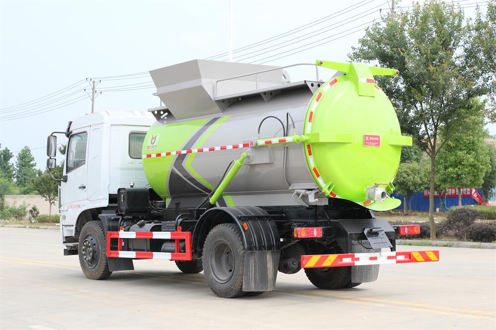 上裝配置:罐體容積10m3,配備120L/240L掛桶提升翻轉(zhuǎn)機構(gòu),液壓系統(tǒng),后蓋液壓鎖緊開啟,罐體可以舉升自卸,尾部帶自流閥;用于運輸液態(tài)垃圾,其特點操作簡單,密封性好,無泄漏,無異味;可選裝固液分離功能,推板擠壓功能,常用于餐館的垃圾轉(zhuǎn)運處理。