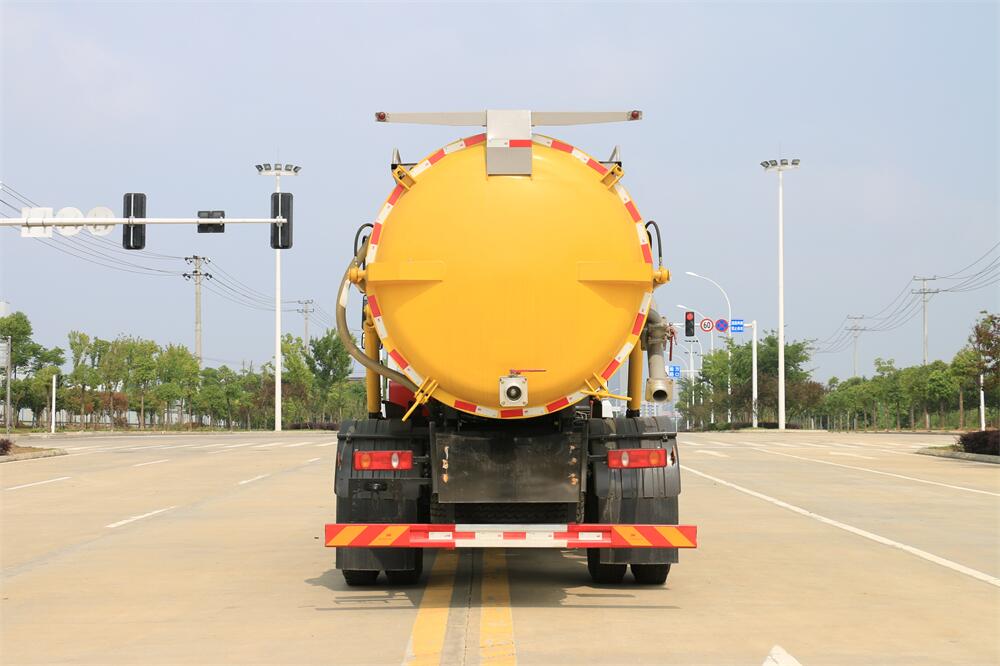 5.液壓舉升自卸功能,便于將各種污物傾倒干凈,后罐門可以液壓啟動開啟,便于清理罐體內(nèi)的沉積物,凝固物及對罐體內(nèi)部進(jìn)行維修、保養(yǎng),液壓取力增強(qiáng)了系統(tǒng)的穩(wěn)定性。