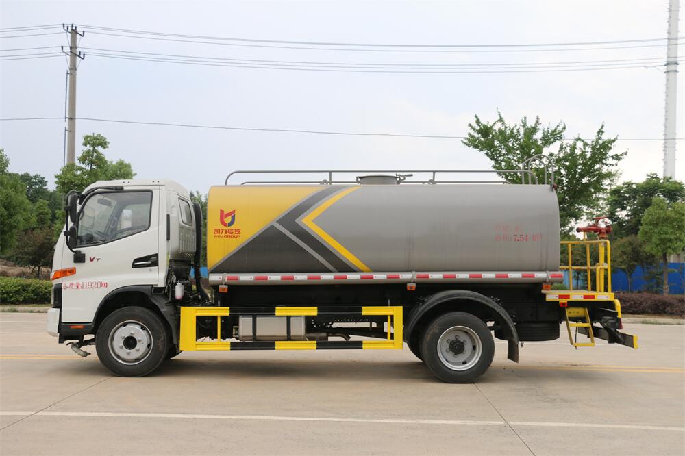 灑水車前裝有鴨形噴嘴或圓頭沖嘴,后面裝有圓柱開灑水噴嘴或蓮蓬頭噴嘴,后部有一工作平臺,裝配有水炮。后部還可裝8個噴嘴(選裝)。