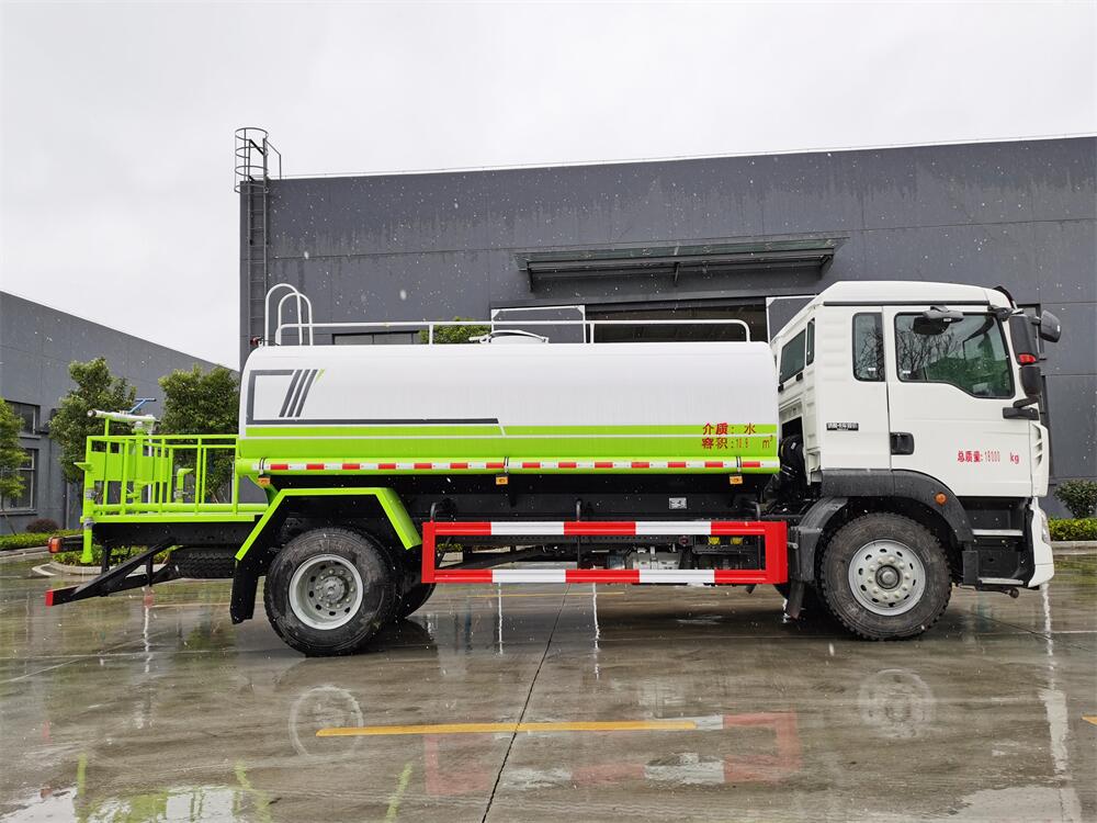 灑水車性能特點:前沖(噴)后灑,帶側噴,罐體后帶工作平臺,平臺上安裝綠化灑水炮,灑水炮可360旋轉,可連續調成直沖狀、大雨、小雨、毛毛雨,帶安全護欄,配備全國質量評比**名的杭州威龍大功率專用 灑水泵,泵可自吸自排,安裝過濾網,帶消防接口,可通過消防栓進水,帶自流閥,隨車選裝20米綠化卷盤,可噴灑農藥。