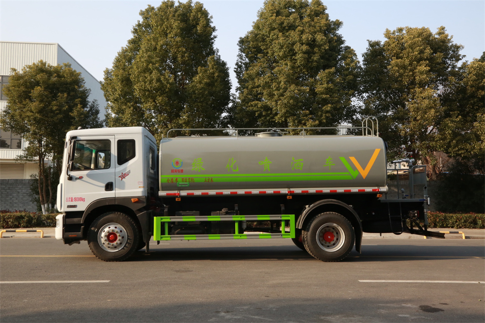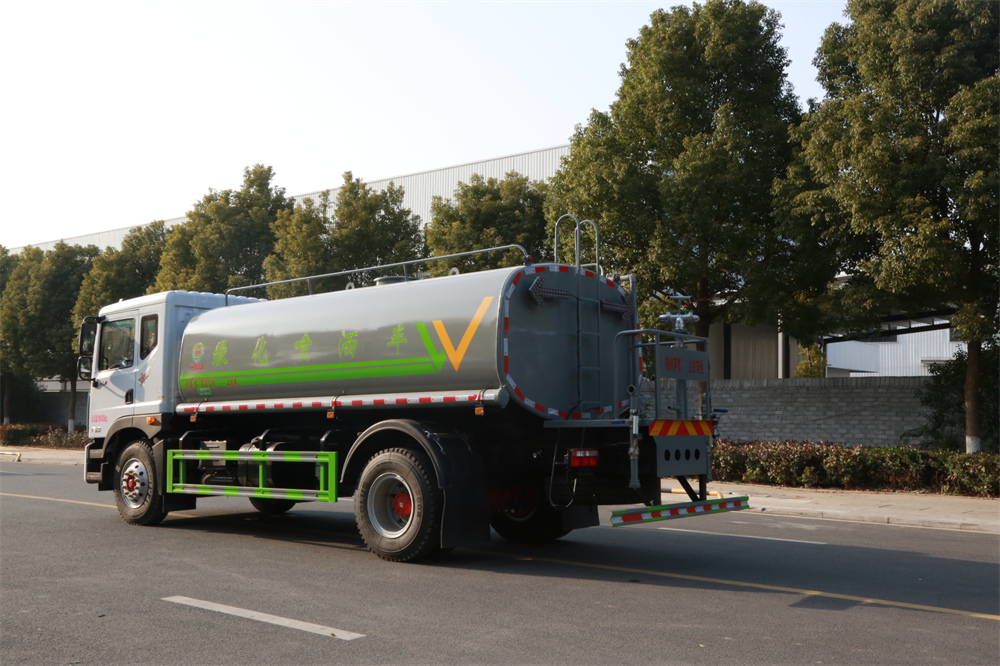 灑水車性能特點:前沖(噴)后灑,帶側噴,罐體后帶工作平臺,平臺上安裝綠化灑水炮,灑水炮可360旋轉,可連續(xù)調成直沖狀、大雨、小雨、毛毛雨,帶安全護欄,配備全國質量評比**名的杭州威龍大功率專用 灑水泵,泵可自吸自排,安裝過濾網(wǎng),帶消防接口,可通過消防栓進水,帶自流閥,隨車選裝20米綠化卷盤,可噴灑農藥。