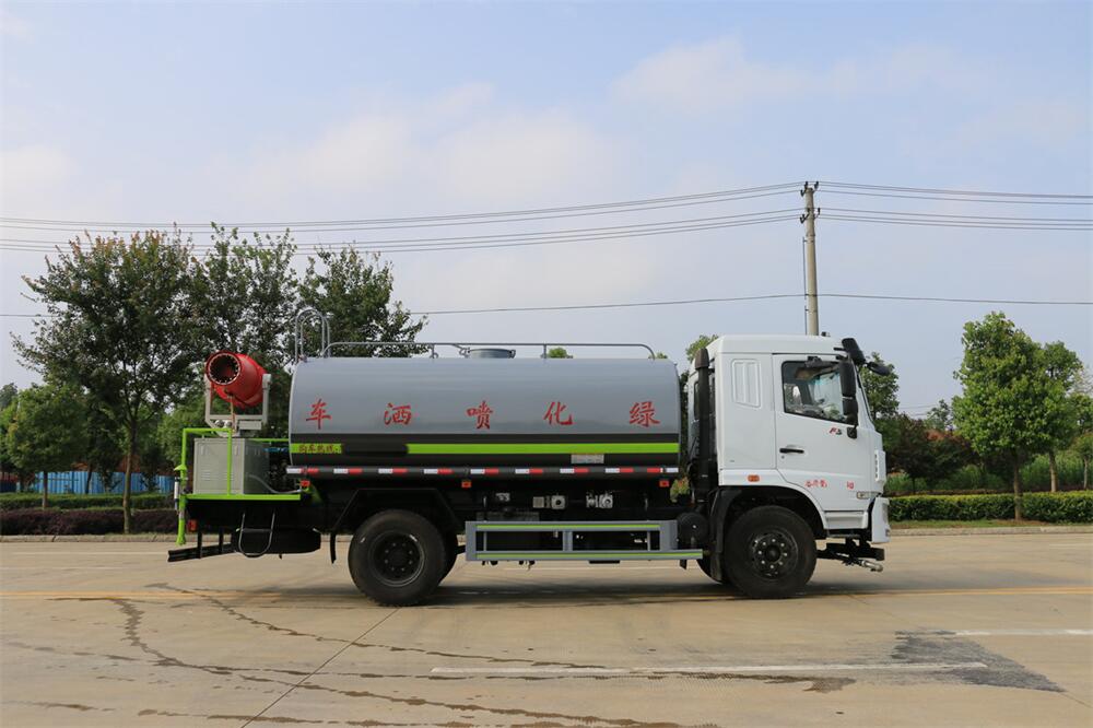 上裝配置:罐體容積 12立方,風送式霧炮機組30米,40米選擇,罐體采用國標Q235碳鋼材質,罐體厚度4MM,前后封頭5MM加厚型,罐體內雙層隔板具有防波蕩作用,以減輕汽車行駛時罐內液體沖擊;灑水車整車及外形尺寸嚴格按照**機動車公告制作而成;裝配大功率專用灑水泵,前沖、后灑、側噴、后平臺帶綠化灑水炮,灑水炮可全方位旋轉,可連續調成直沖狀、大雨、小雨、毛毛雨;配消防接口,自流閥,濾網,帶自吸自排功能。前封頭帶水位計,后平臺主管路帶1寸澆花接口,后爬梯,帶1個消防接頭,帶1個自流閥,1個過濾裝置,其余標配。