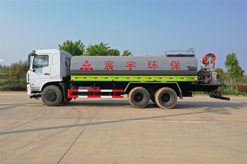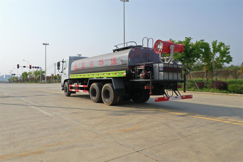 上裝配置:罐體容積 18-20立方,風送式霧炮機組30米,40米選擇,罐體采用國標Q235碳鋼材質(zhì),罐體厚度4MM,前后封頭5MM加厚型,罐體內(nèi)雙層隔板具有防波蕩作用,以減輕汽車行駛時罐內(nèi)液體沖擊;灑水車整車及外形尺寸嚴格按照**機動車公告制作而成;裝配大功率專用灑水泵,前沖、后灑、側(cè)噴、后平臺帶綠化灑水炮,灑水炮可全方位旋轉(zhuǎn),可連續(xù)調(diào)成直沖狀、大雨、小雨、毛毛雨;配消防接口,自流閥,濾網(wǎng),帶自吸自排功能。前封頭帶水位計,后平臺主管路帶1寸澆花接口,后爬梯,帶1個消防接頭,帶1個自流閥,1個過濾裝置,其余標配。