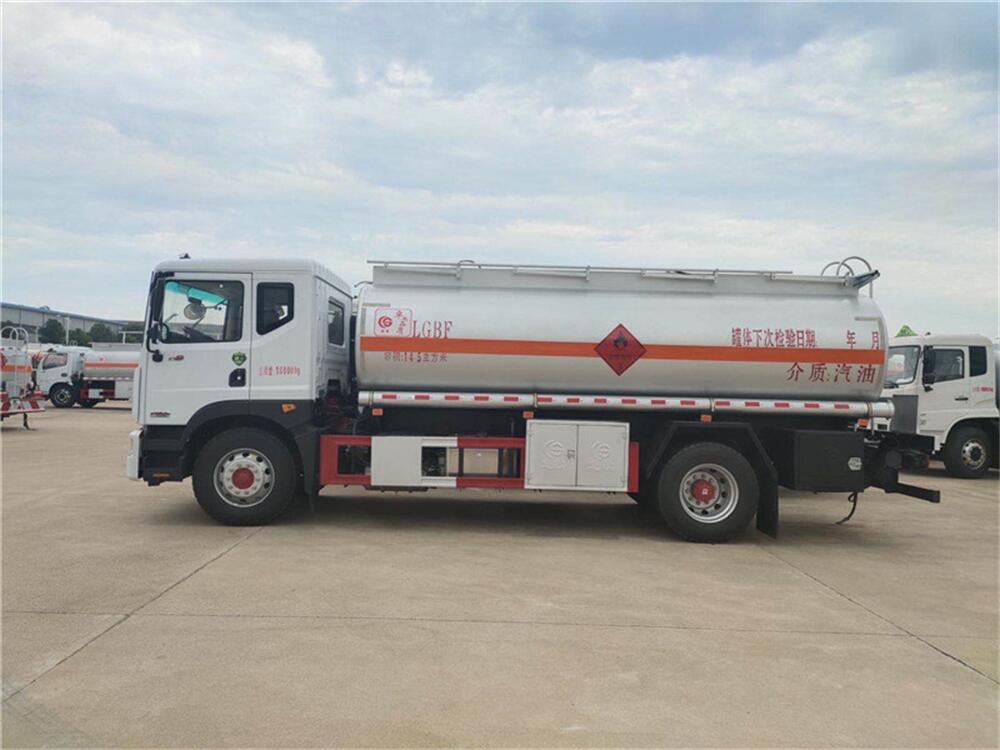 上裝配置: 嚴格按照公告尺寸制作,罐體公告容積:14.5立方,實際容積15立方,上戶噸位:9735KG,介質:汽油。單倉,罐體為碳鋼制作,罐體厚度5mm(≧4.2mm),封頭5mm(≧4.2mm)厚,帶油車專用自吸自排泵,2個歐標罐口,1個海底閥,1個防溢流探桿,1個下裝油口,1個油氣回收接頭,整車管道及球級出口為3寸,配一個防火帽,兩根與罐體等長的輸油管,兩個滅火器,其余廠內標配。顏色:銀粉,帶3M反光標及反光帶 。