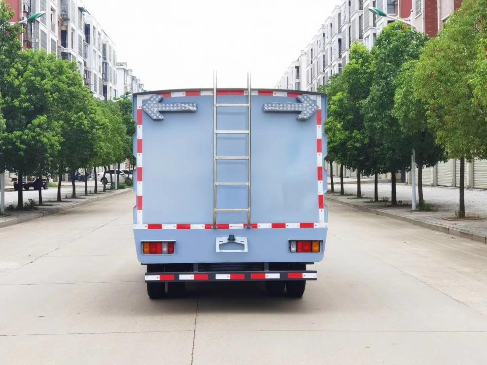 3、車廂體前部設(shè)自動護欄清洗車自動伸縮門,非作業(yè)狀態(tài)時內(nèi)藏清洗工作裝置,避免工作裝置外露,提高裝置使用壽命。