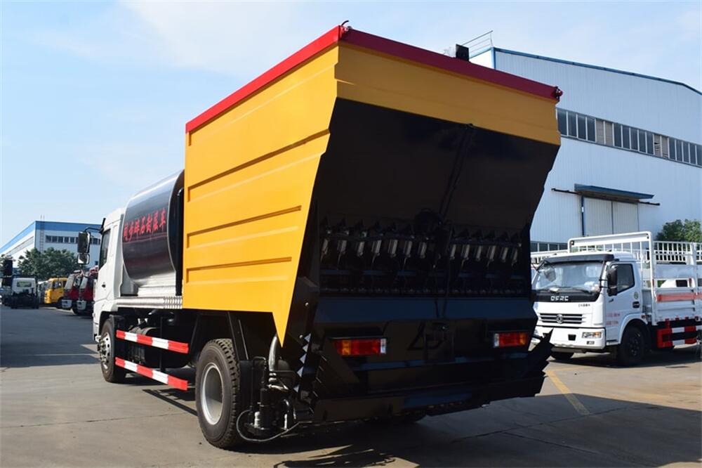 4、后雙橋同步碎石封層車完全采用電氣**,自動(dòng)化程度高,,能**的計(jì)算出設(shè)備在施工過程中瀝青噴灑量和石屑撒布量的多少;