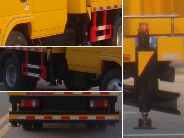 | 吊鉤為選裝件;前伸440mm;側面防護及后下部防護裝置材料材質:Q235,連接方式:焊接加螺栓連接;后下部防護裝置斷面尺寸(寬贅?:30?00(mm),離地高度:440mm;ABS及其**器型號為:APG3550500A4,生產廠家為:浙江亞太機電股份有限公司. | |||