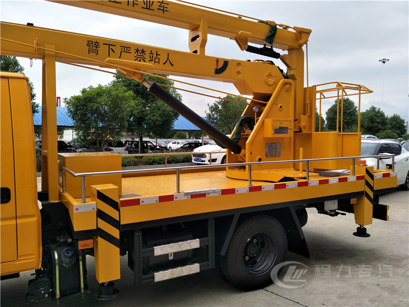 | 其他 | 該車前伸為800mm。選裝二節(jié)工作臂時,作業(yè)高度為12米; 選裝三節(jié)工作臂時,作業(yè)高度為14米和16米。防護材料:Q23**碳鋼,連接方式:左右側面及后下部防護均采用焊接連接,后部防護斷面尺寸(mm):170×50,后部防護離地高度(mm):350。ABS系統(tǒng)型號:APG3550500A,ABS系統(tǒng)生產(chǎn)廠家:浙江亞太機電股份有限公司。該車可選裝帶電控操作箱。專用裝置:吊臂,主要用于高空作業(yè),進行維修、安裝、清洗、攝影、造船、化工、電力、剪枝、更換路燈及其他工程搶修作業(yè)。 | ||