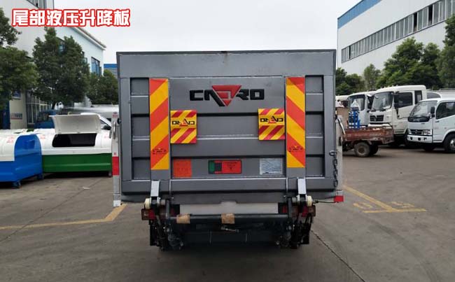 改裝箱體容積:3400×1750×600(mm),可裝15個(gè)垃圾桶,尾部液壓升降板,兩側(cè)側(cè)翻欄板,方便搬運(yùn)垃圾桶,選裝定位桿,可防止垃圾桶在運(yùn)輸過(guò)程中滑動(dòng)或傾倒。適用與城市污水垃圾桶的運(yùn)輸,防止城市路面二次污染。是保證城市路面清潔的必用專用車。